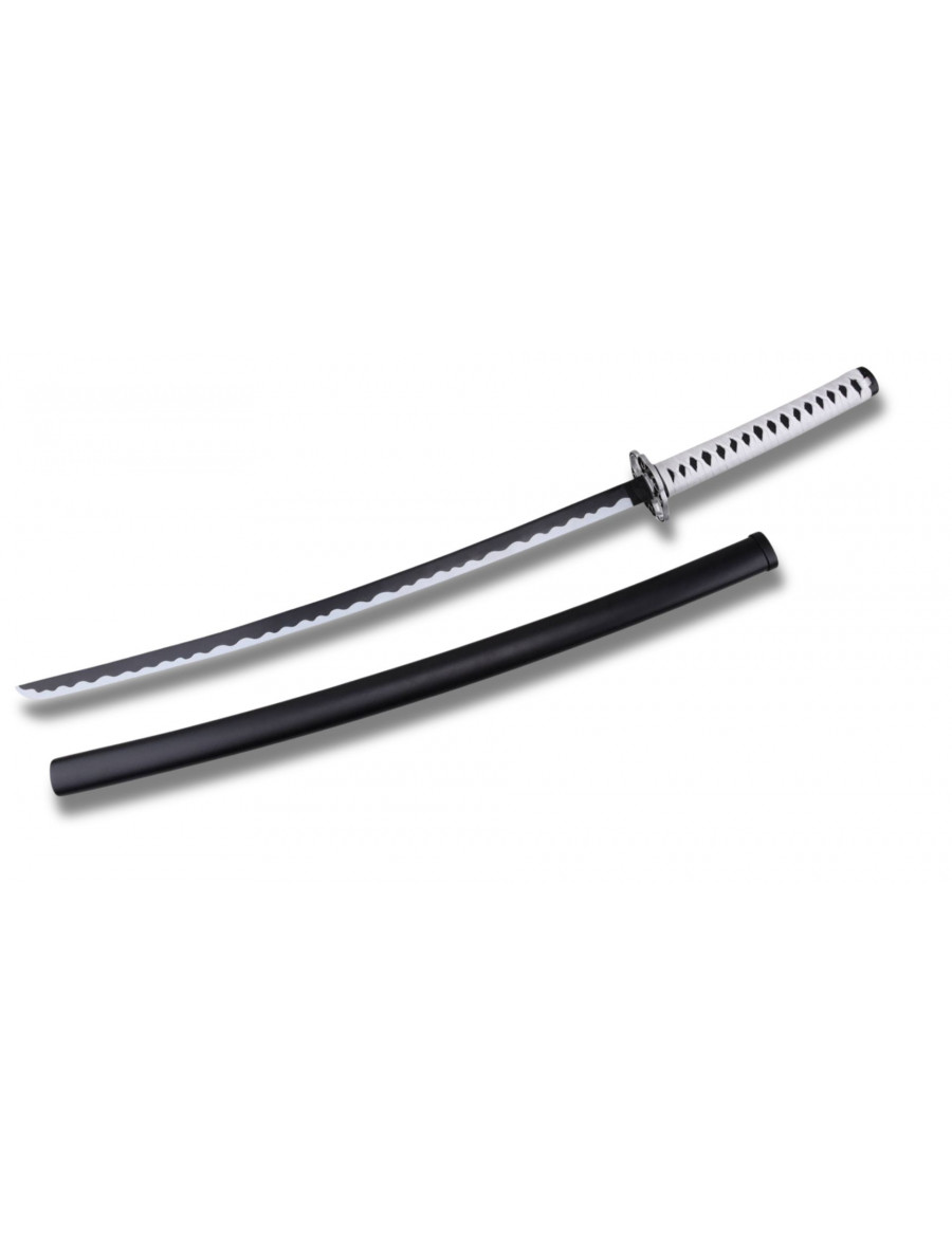 Ce katana noir au style unique évoque puissance, héritage et vengeance. Avec son manche blanc à tressage losange noir, sa garde ajourée en forme de nuages stylisés, et sa lame noire avec hamon ondulé, ce sabre incarne l’équilibre entre tradition et modernité. Son design sobre et marquant en fait une pièce incontournable pour les passionnés de katanas d'inspiration manga contemporaine. Parfait pour le cosplay, la décoration ou la collection haut de gamme.