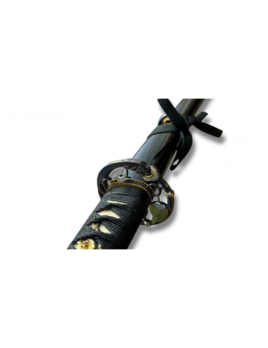 Ce katana porte le nom de Kage no En, le Cercle des Ombres. Forgé selon la tradition Maru, il fut conçu pour incarner l’équilibre parfait entre discrétion et efficacité. Sa lame, pure et sans artifice, reflète l’âme d’un guerrier qui agit dans le silence plutôt que dans la gloire.
