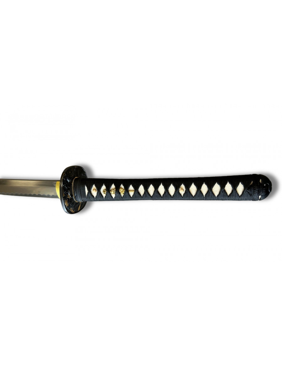 Ce katana porte le nom de Kuroaka no Seishin — l’Esprit Noir et Pourpre. Forgé selon l’art exigeant du Shihozume, il incarne l’union de forces opposées : la maîtrise et la fureur, l’ombre et le sang.